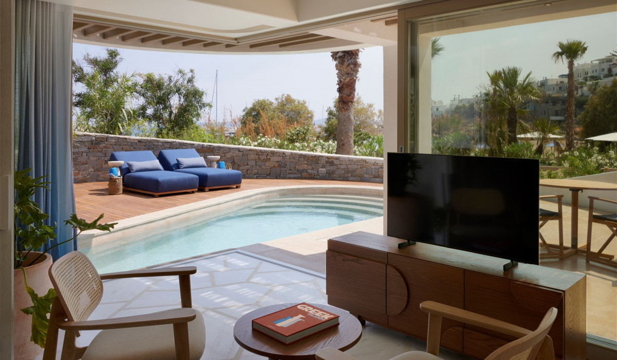 Avant Mar je s 38 skrbno zasnovanimi sobami in apartmaji, vključno s sedmimi apartmaji s potopnimi bazeni in Avant Mar Premium Suite s svojim lastnim zasebnim bazenom, popolno dopustniško zatočišče. Ponujajo največje udobje in pomirjujočo estetiko, vsak prostor objame lepoto Parosa z lahko